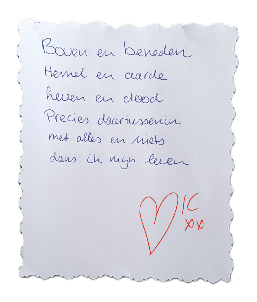 Het leven heeft mij laten zien, dat wanneer je een ingrijpende gebeurtenis meemaakt en door een moeilijke tijd van je leven gaat, het uiteindelijk licht wordt. Ik was hierdoor de verbinding met mijzelf kwijt. Dacht met mijn hoofd en niet meer met mijn hart. Inmiddels heb ik de verbinding met mijzelf gevonden en leid ik een bezield en gelukkig leven.